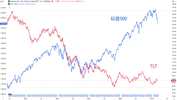 标普500 vs 20年期以上美国国债ETFTLT  来源:Traidingview