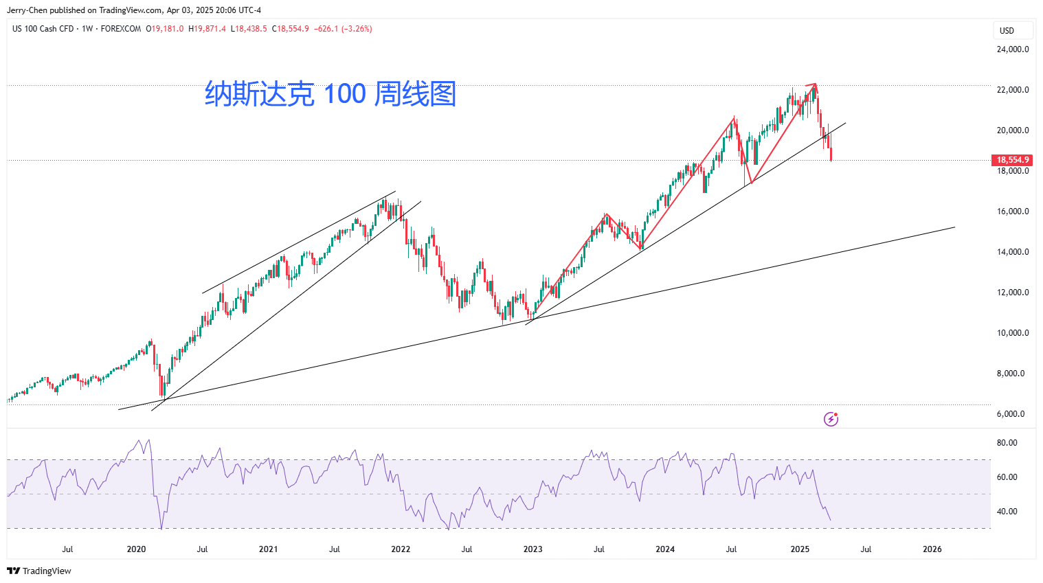 49日“对等”关税生效之前,随着谈判的进行市场情绪可能会有反复,但随着企业盈利预期遭遇大幅下调,看上去美股目前正在酝酿更大级别的下行周期。