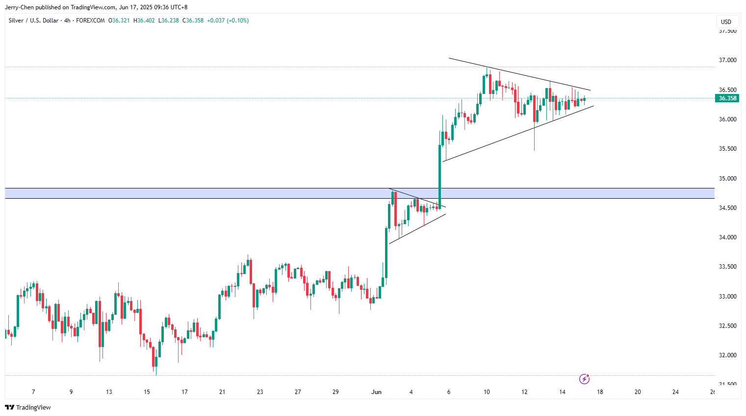 由于白银本身就处于多头走势之中,若能顺利突破当前形态,上方目标或瞄向前高37以及40美元上方。反之,下方支撑可以依次关注3635.50,以及更关键的35美元一线。
